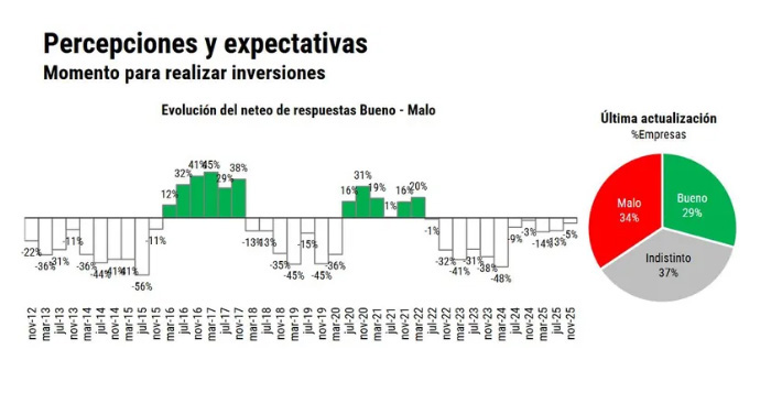De este modo, los encuestados todavía no perciben que sea un buen momento para realizar inversiones. En ese sentido, solo el 29% indica que las condiciones actuales son propicias para realizar inversiones.