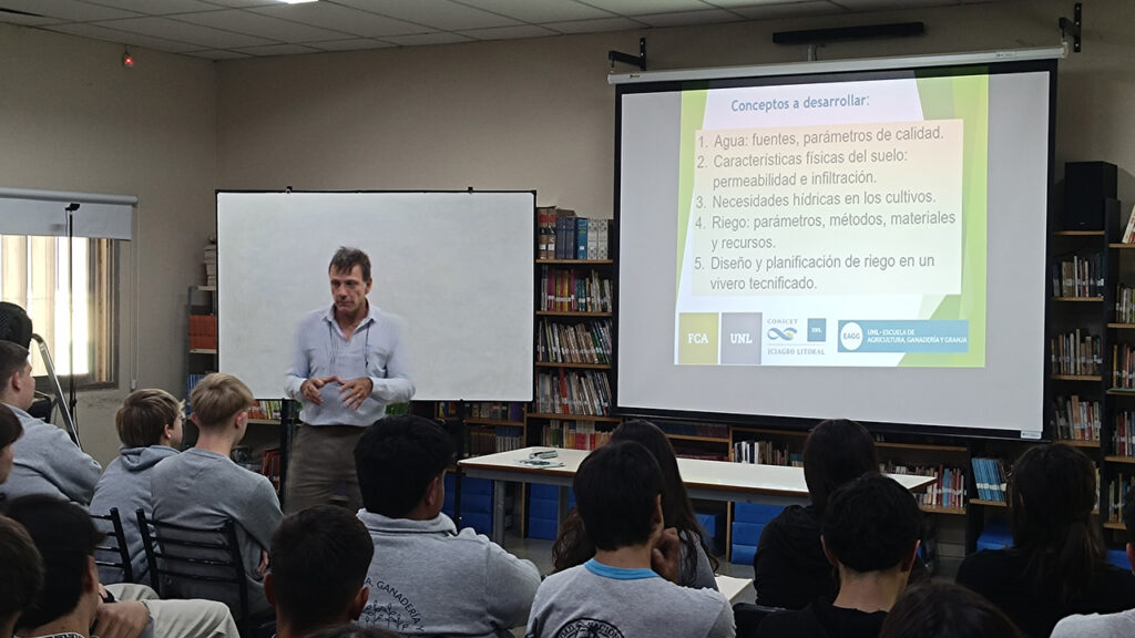 También hubo capacitaciones con profesionales invitados: “Calidad del agua” fue el tema desarrollado por Elbio Donnet, regente de planta en la sección agrícola de Wöhr Química; “Electricidad básica” fue una capacitación que brindó el docente de la EAGG-UNL, Nazareno Rocco; el Dr. Roberto Marano, docente de la FCA-UNL abordó los “Sistemas de riego”, mientras que las nociones de “Robótica” fueron motivo del encuentro que estuvo a cargo del egresado de la EAGG-UNL, Ingeniero Mecatrónico Agustín Bernardi.